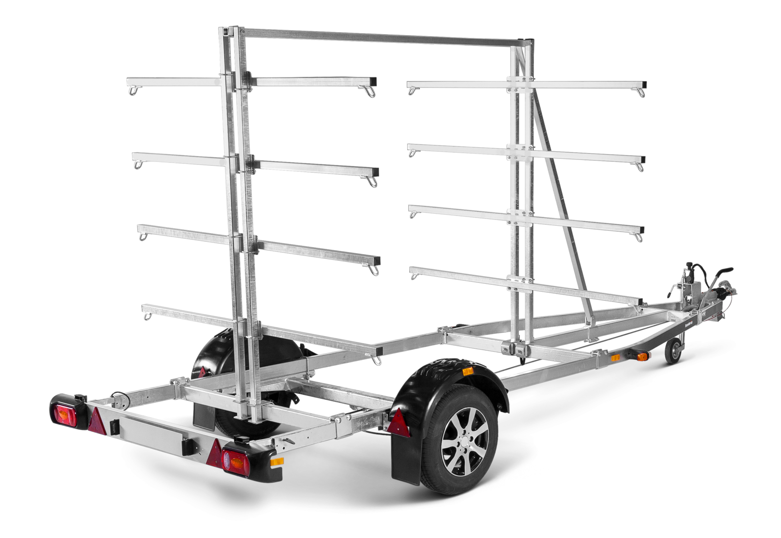 8116B750C - Miejsce na 16 kajaków, Łatwo regulowany stelaż, Dyszel w kształcie litery V zapewniający bezpieczny transport