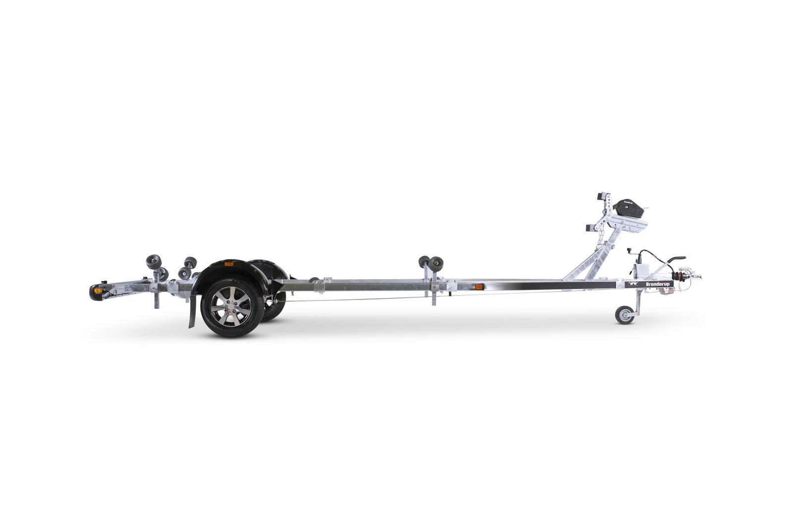 Regulowana wciągarka w połączeniu z regulowanymi rolkami sprawia, że przyczepa pasuje do większości łodzi na rynku.