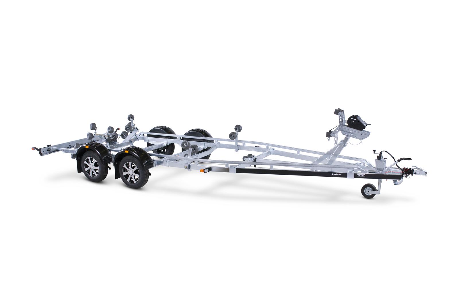 Bezpieczna przyczepa hamowana ze wzmocnionym podwoziem wyposażona w dyszel w kształcie litery V o doskonałych właściwościach jezdnych. Załadunek i rozładunek nigdy nie były prostsze. Ukryty i zabezpieczony system kabli oraz superrolki premium w standardzie. Regulowana wciągarka w połączeniu z regulowanymi rolkami sprawia, że przyczepa pasuje do większości łodzi na rynku. Zdjęcia są zdjęciami poglądowymi i mogą przedstawiać opcjonalne elementy wyposażenia.