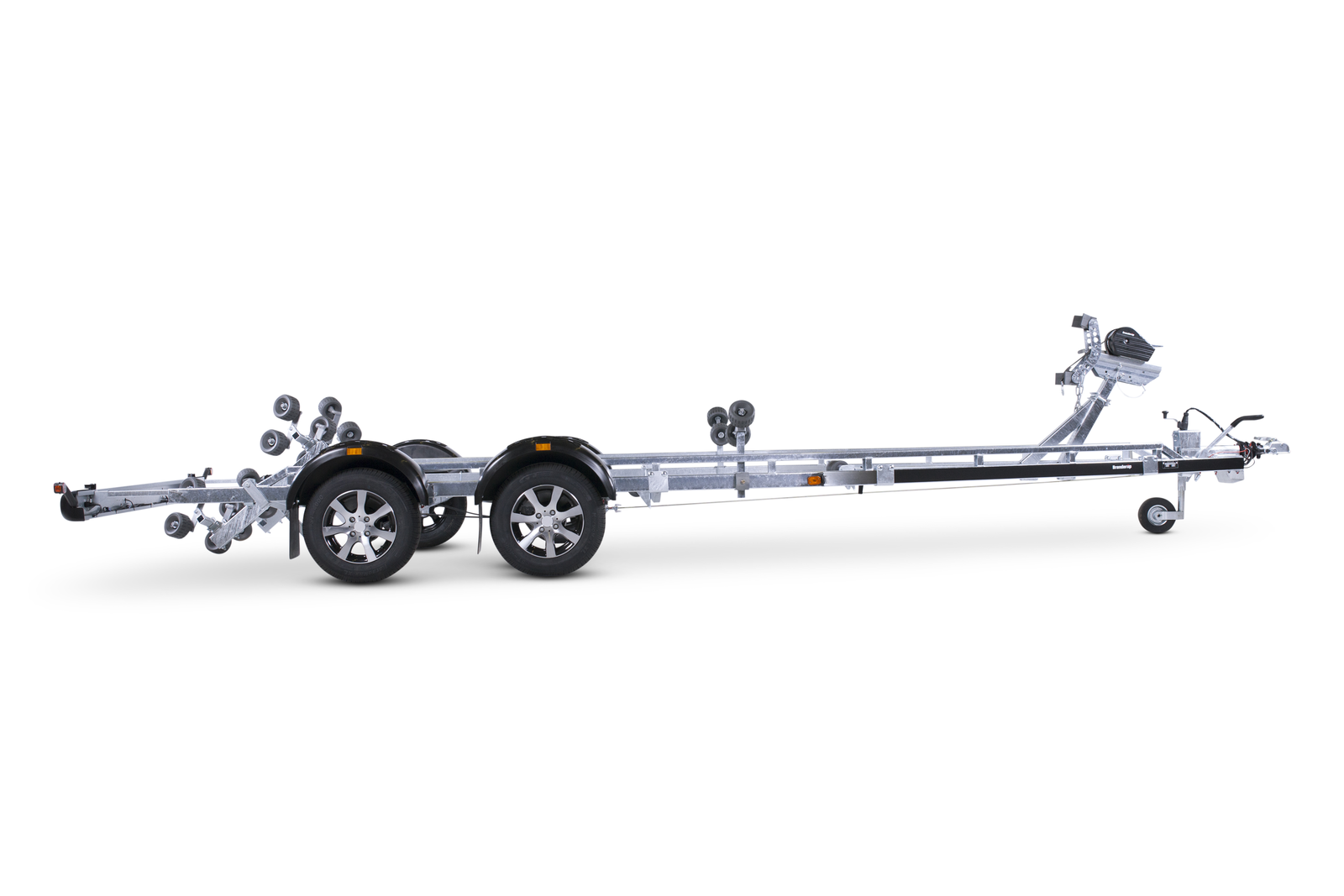 Bezpieczna przyczepa hamowana ze wzmocnionym spawanym podwoziem wyposażona w dyszel w kształcie litery V o doskonałych właściwościach jezdnych. Załadunek i rozładunek nigdy nie były prostsze. Ukryty i zabezpieczony system kabli oraz mocne superrolki premium w standardzie. Regulowana wciągarka w połączeniu z regulowanymi rolkami sprawia, że przyczepa pasuje do większości łodzi na rynku. Zdjęcia są zdjęciami poglądowymi i mogą przedstawiać opcjonalne elementy wyposażenia.