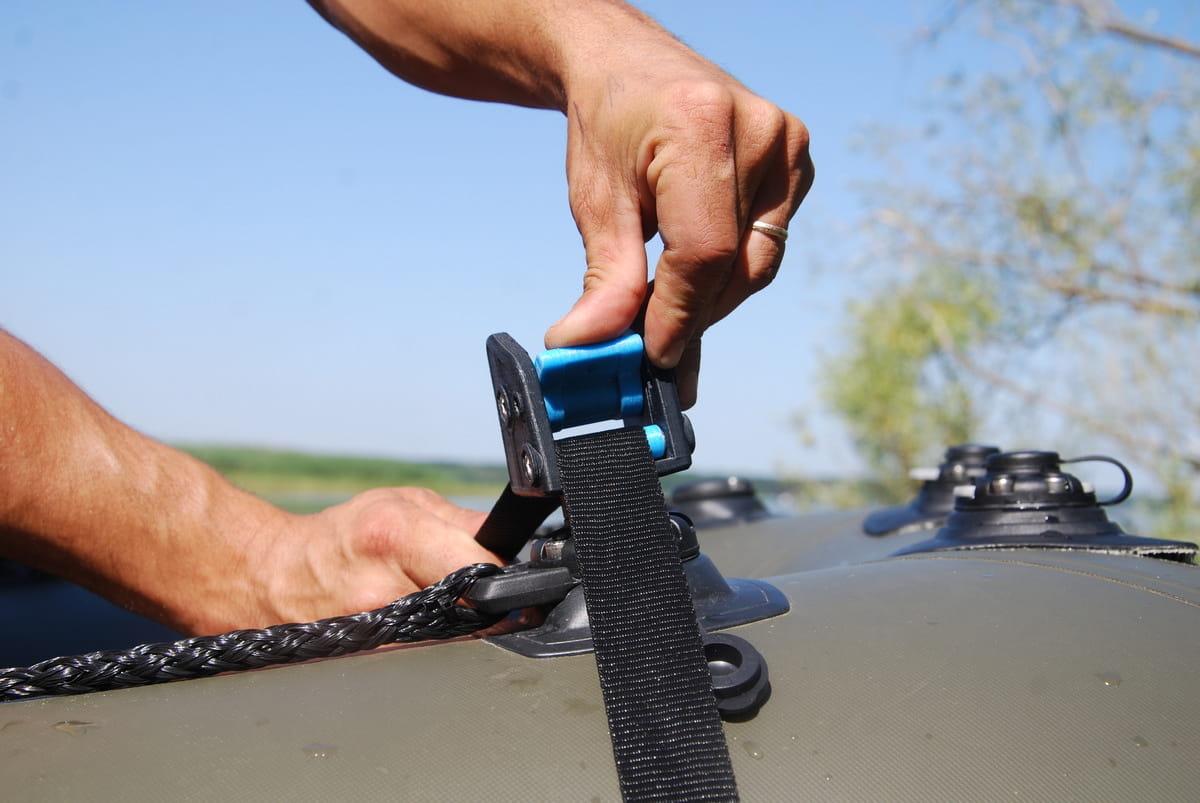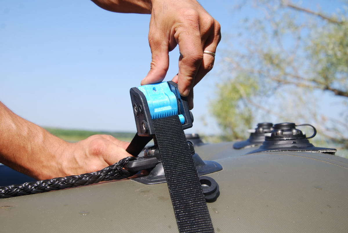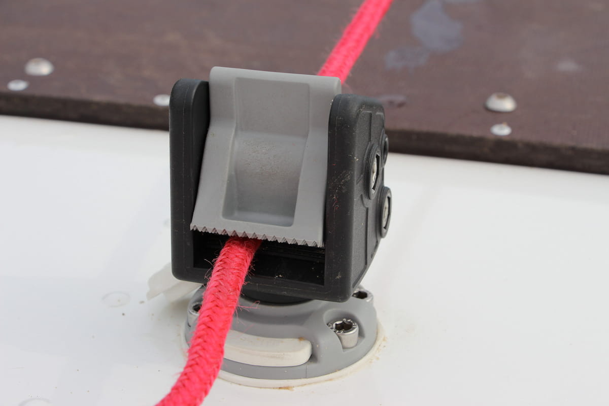 Mechanizm blokujący utrzymuje kotwicę w podniesionej pozycji bez potrzeby dodatkowego zabezpieczenia. Do blokady można użyć 32mm taśmy lub 10 mm liny.