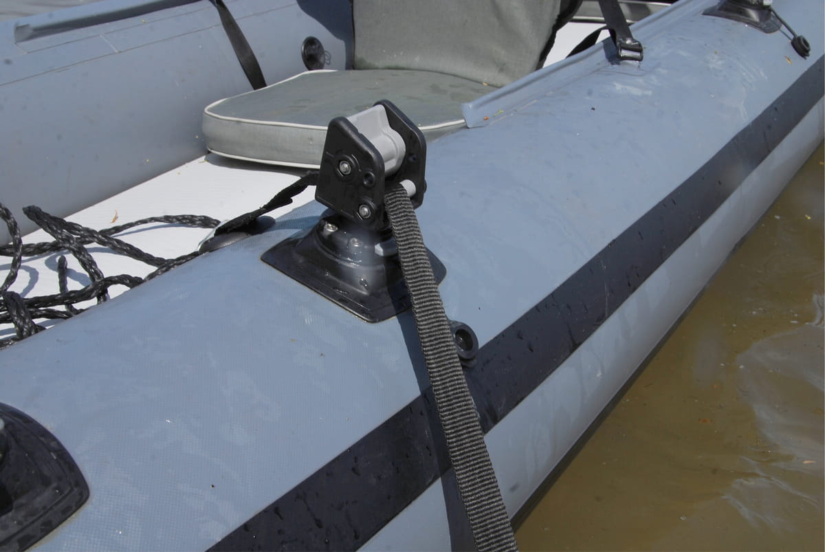 Blokadę montuje się na burcie jednostki pływającej przy pomocy uniwersalnego zamka oraz platformy montażowej dedykowanej do konkretnej powierzchni np. dmuchanej, twardej, na reling lub na profil typu C (w przypadku mocowania blokady na powierzchni dmuchanej zalecane jest użycie powiększonej platformy montażowej FMp225 wytrzymującej większe obciążenia).