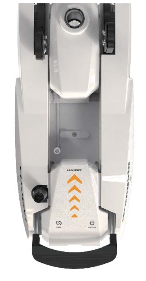 Wyposażony w wskaźnik naładowania akumulatora, oraz włącznik główny silnika. Poziom Naładowania jest wyświetlany również na pilocie.