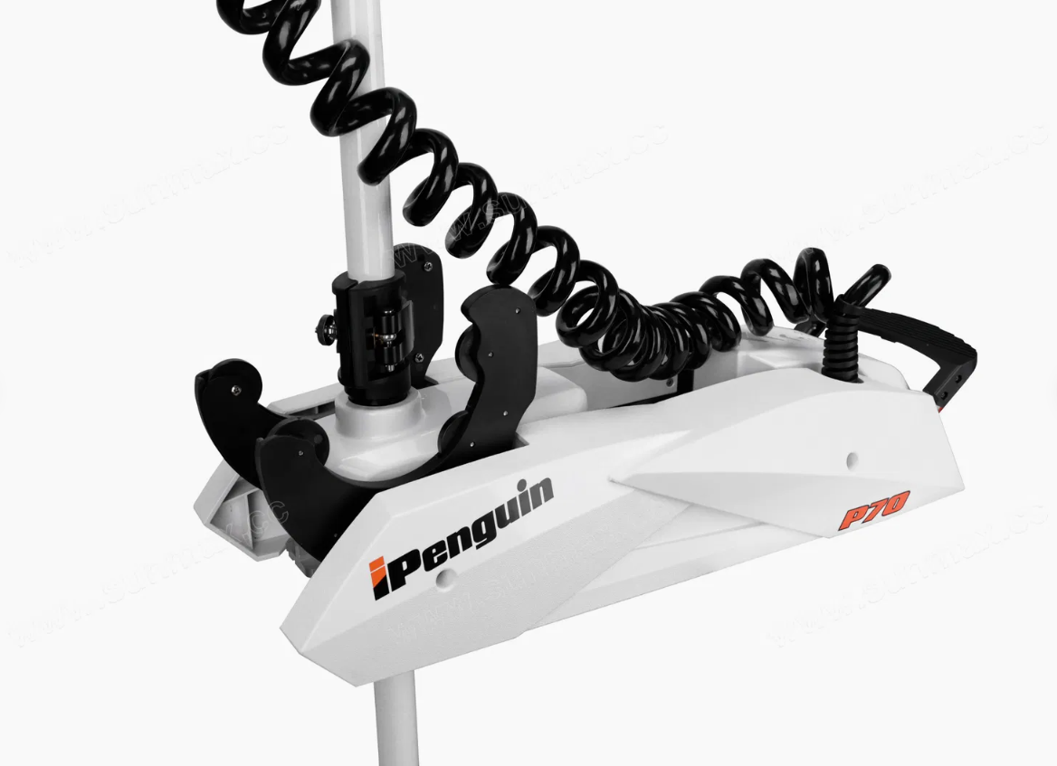 iPENGUIN P70 Haibo, to wytrzymały i mocny, 12 voltowy, dziobowy silnik elektryczny o sile ciągu 70lbs. Przystosowany do zastosowań w wodzie słonej i zasolonej.