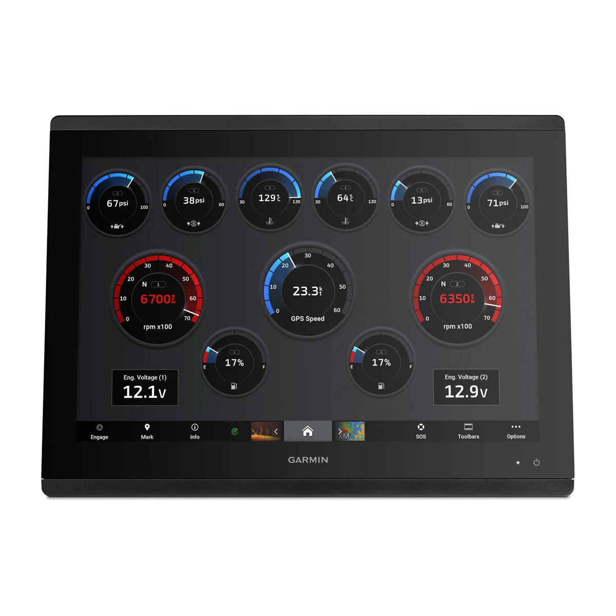 Dostępny w rozmiarach 10″, 12″ lub 16″ wyświetlacz oferuje szersze kąty widzenia oraz doskonałą czytelność, nawet w pełnym słońcu i w okularach przeciwsłonecznych z polaryzacją. - ŁATWE I ATRAKCYJNE OPCJE MONTAŻU