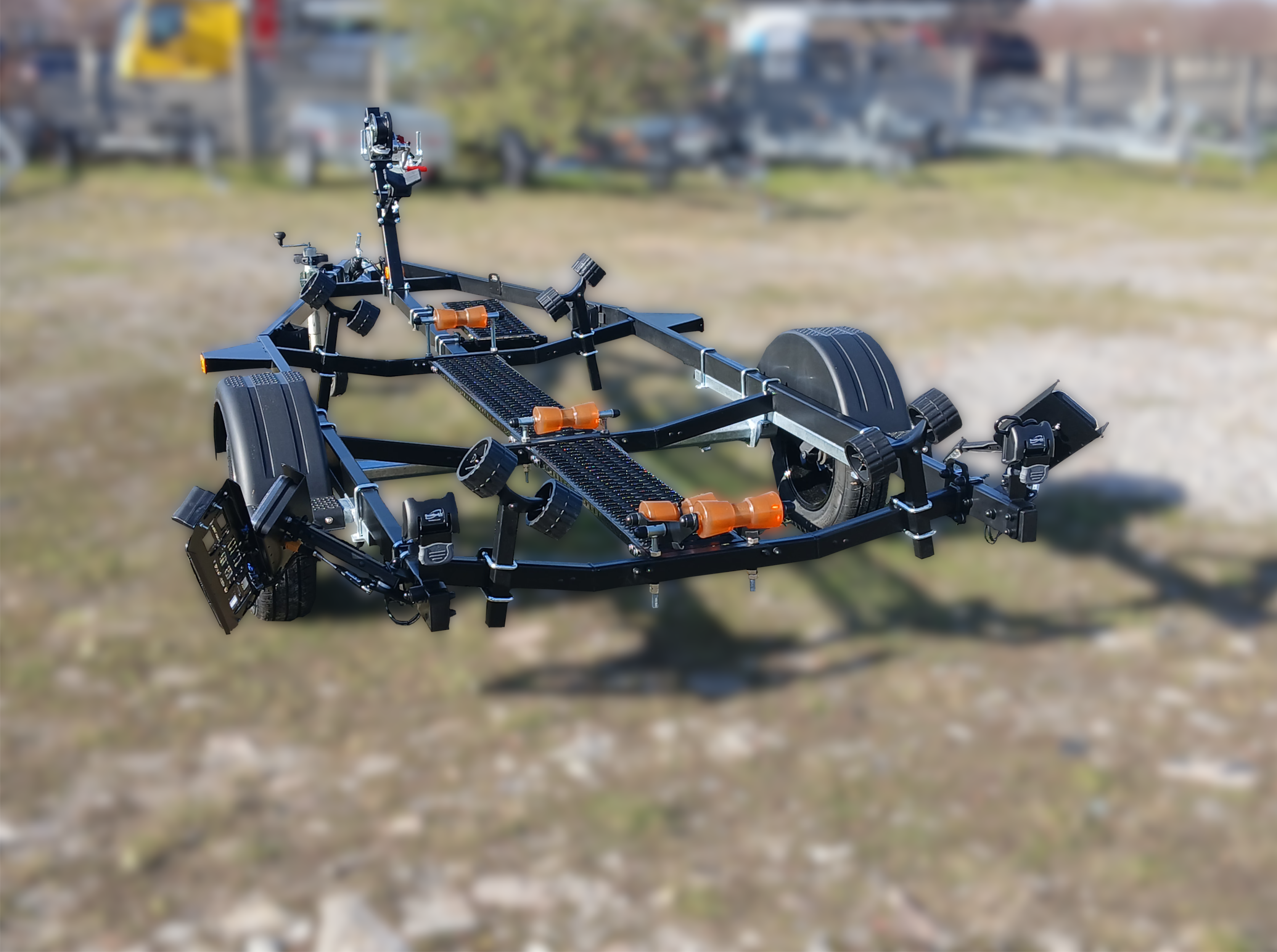 Uchylny system rolek: Maksymalne ułatwienie podczas wprowadzania łodzi na przyczepę oraz jej bezpiecznego spuszczania na wodę.