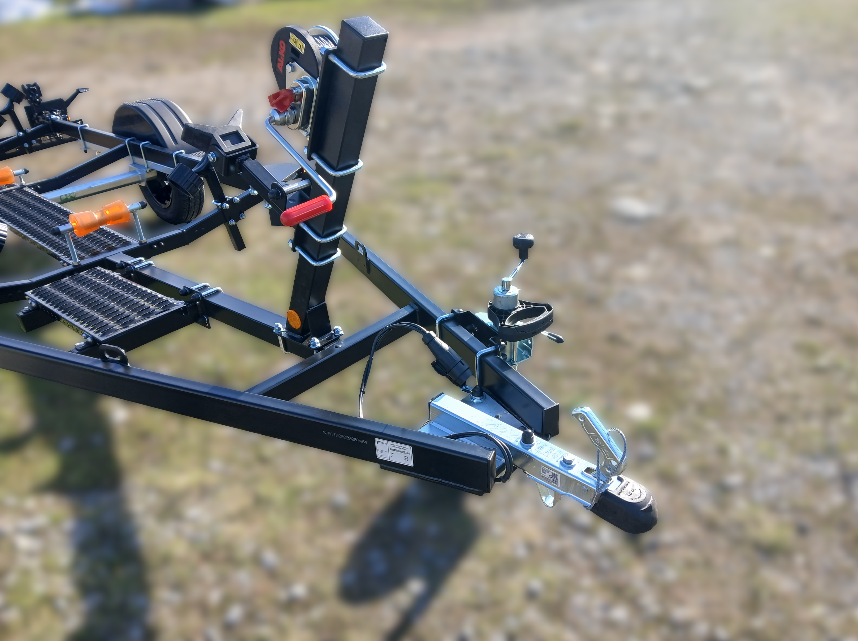 Dodatkowe stopnie boczne: Ułatwiony dostęp do pokładu łodzi z każdej strony przyczepy.