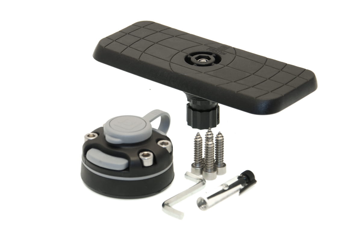 Mocowanie obywa się się przy pomocy uniwersalnego zamka i platformy montażowej dedykowanej do konkretnej powierzchni np. dmuchanej, twardej, na reling lub profil typu C.