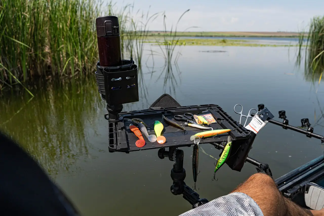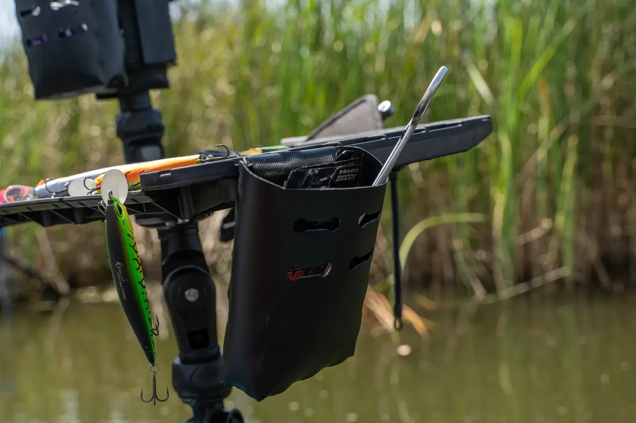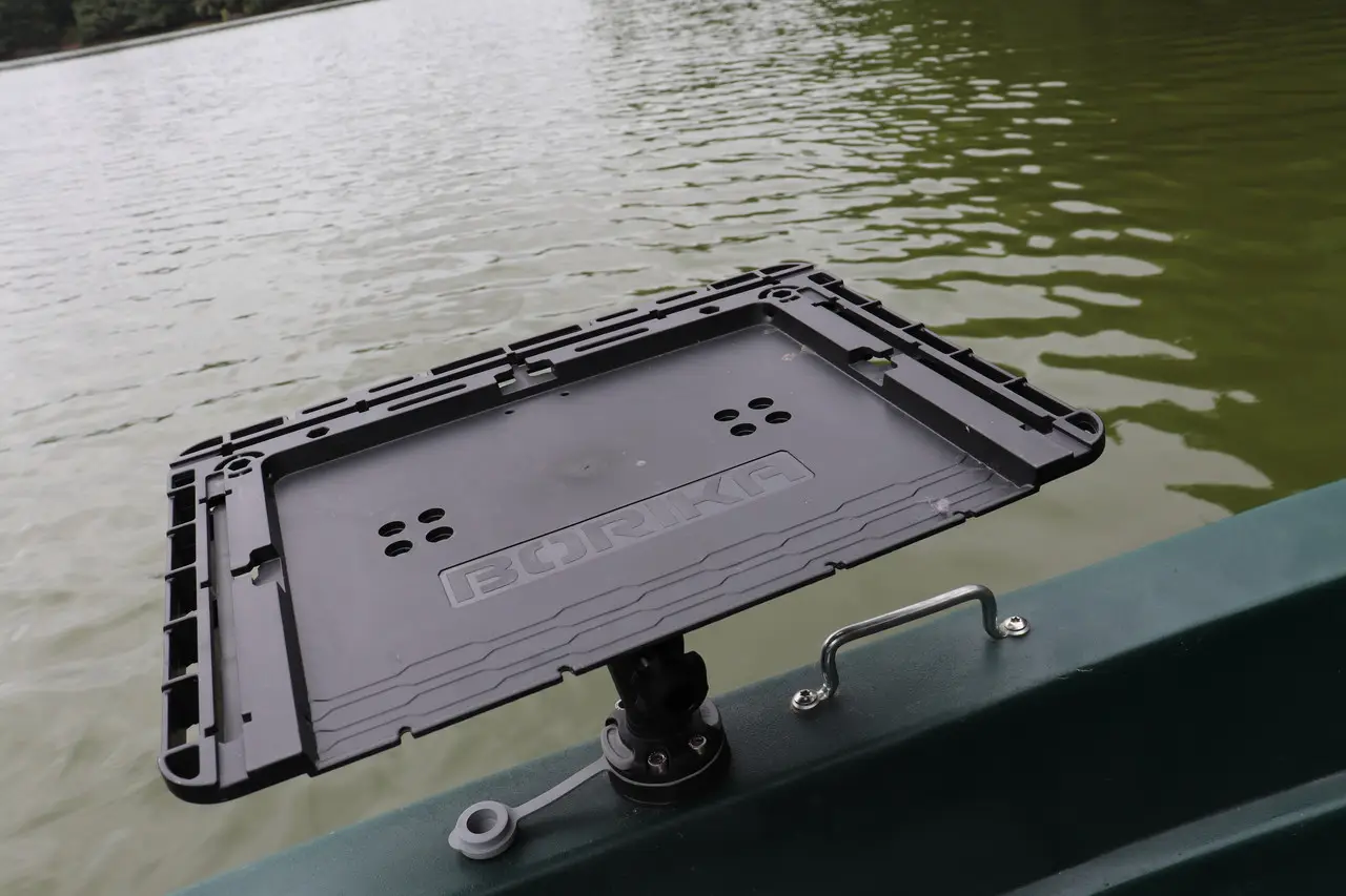 Stolik na sprzęt i narzędzia tego modelu przyda się zarówno zawodowym wędkarzom, jak i wędkarzom amatorom. Ma na celu uporządkowanie przestrzeni na jednostce pływającej, co pozwala zaoszczędzić ograniczoną przestrzeń na łodzi i mieć pod ręką wszystkie niezbędne narzędzia wędkarskie, sprzęt, przynęty i sprzęt. Powierzchnia ma wymiary 28 x 38 cm W środek wbudowane jest osiem magnesów neodymowych do mocowania metalowych przedmiotów: noży, przynęt, nożyczek i innych. Zaprojektowano również otwory do podwieszenia narzędzi oraz wpięcia karabinków retrievera. Z trzech stron wzdłuż obwodu panelu przewidziano rowek teowy, w który można wbudować zamki z dolnym ryglem. Pozwalają na zamocowanie akcesoriów na panelu (uchwyt na napoje model CUp, uchwyt na latarkę Lh130 itp.). Równolegle do T-fugi, wzdłuż krawędzi panelu, znajdują się podłużne otwory do podwieszenia miękkich toreb BORIKA FASTen® oraz systemów MOLLE z paskami: można do nich przymocować krótkofalówkę i wygodnie przechowywać drobny sprzęt i narzędzia w torby. Okrągłe otwory po obu stronach służą do wiązania liny elastycznej TENDON. Po przekroczeniu go wygodnie jest przymocować pudełka ze sprzętem i przynętami na powierzchni panelu. Po wewnętrznej stronie znajdują się małe otwory na woblery i inne przynęty na haczykach. Pozycja pochylenia jest regulowana w krokach co 27,7° i ustalana przez obracanie nakrętki pokrętła. Akcesorium można łatwo i niezawodnie zamocować w dowolnym zamku lub systemie montażowym BORIKA FASTen®, a w przypadku zastosowania adapterów przejściowych również w systemach montażowych innych producentów (SCOTTY®, RAM®, RAILBLAZA®, YakAttack®).