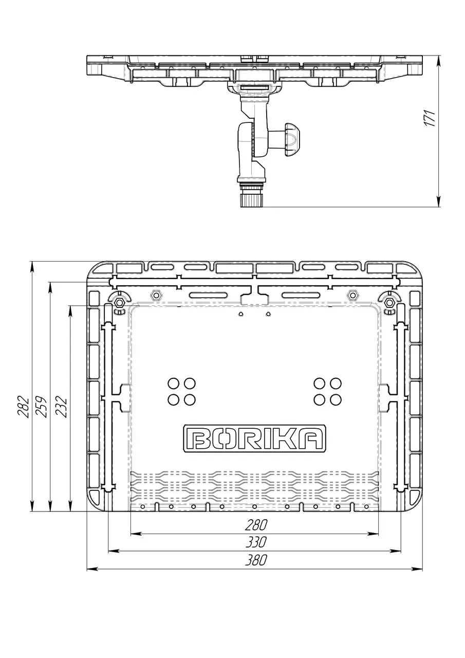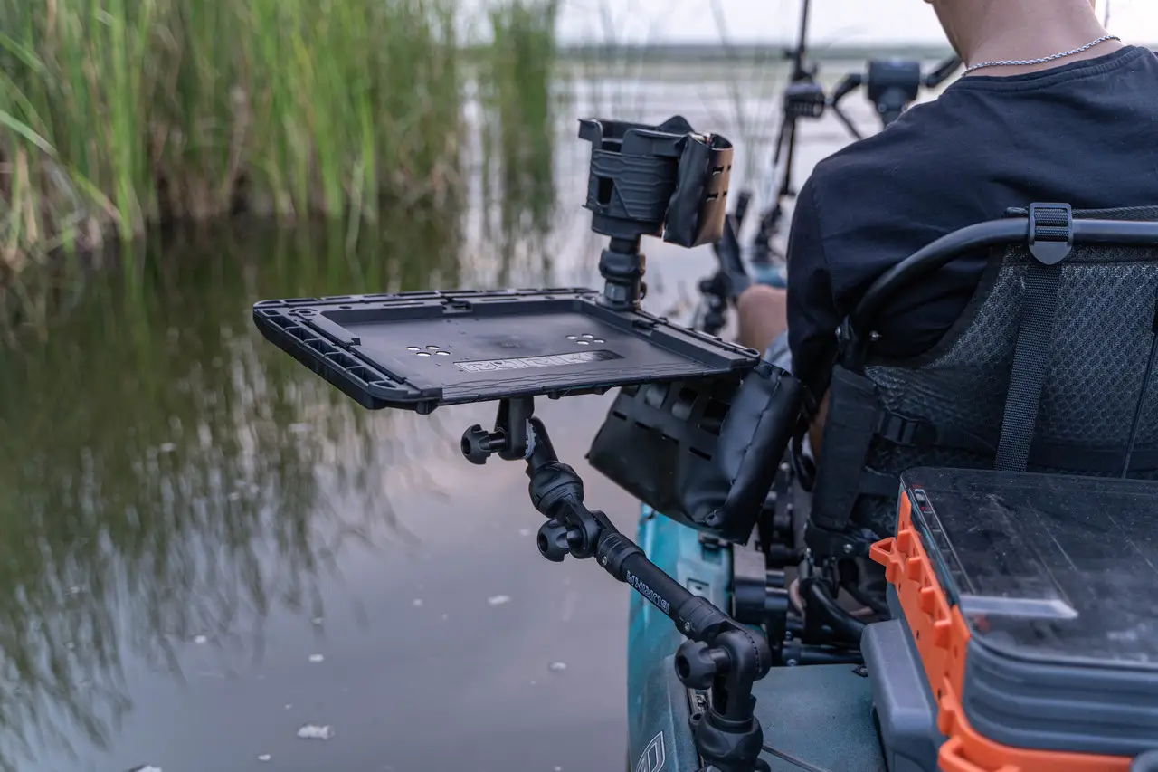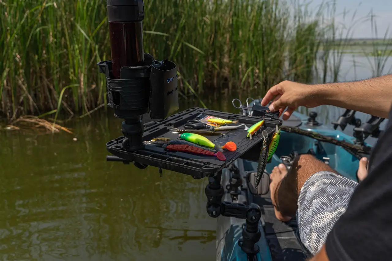 Stolik na sprzęt i narzędzia tego modelu przyda się zarówno zawodowym wędkarzom, jak i wędkarzom amatorom. Ma na celu uporządkowanie przestrzeni na jednostce pływającej, co pozwala zaoszczędzić ograniczoną przestrzeń na łodzi i mieć pod ręką wszystkie niezbędne narzędzia wędkarskie, sprzęt, przynęty i sprzęt. Powierzchnia ma wymiary 28 x 38 cm W środek wbudowane jest osiem magnesów neodymowych do mocowania metalowych przedmiotów: noży, przynęt, nożyczek i innych. Zaprojektowano również otwory do podwieszenia narzędzi oraz wpięcia karabinków retrievera. Z trzech stron wzdłuż obwodu panelu przewidziano rowek teowy, w który można wbudować zamki z dolnym ryglem. Pozwalają na zamocowanie akcesoriów na panelu (uchwyt na napoje model CUp, uchwyt na latarkę Lh130 itp.). Równolegle do T-fugi, wzdłuż krawędzi panelu, znajdują się podłużne otwory do podwieszenia miękkich toreb BORIKA FASTen® oraz systemów MOLLE z paskami: można do nich przymocować krótkofalówkę i wygodnie przechowywać drobny sprzęt i narzędzia w torby. Okrągłe otwory po obu stronach służą do wiązania liny elastycznej TENDON. Po przekroczeniu go wygodnie jest przymocować pudełka ze sprzętem i przynętami na powierzchni panelu. Po wewnętrznej stronie znajdują się małe otwory na woblery i inne przynęty na haczykach. Pozycja pochylenia jest regulowana w krokach co 27,7° i ustalana przez obracanie nakrętki pokrętła. Akcesorium można łatwo i niezawodnie zamocować w dowolnym zamku lub systemie montażowym BORIKA FASTen®, a w przypadku zastosowania adapterów przejściowych również w systemach montażowych innych producentów (SCOTTY®, RAM®, RAILBLAZA®, YakAttack®).