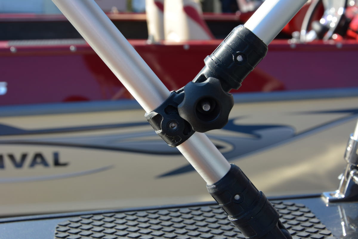 Łącznik służy do połączenia dwóch relingów. Umożliwia ich ustawienie pod kątem do 90°. W zestawie 2 szt.