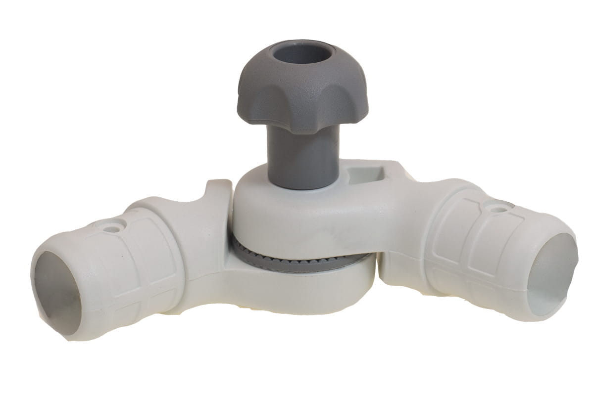 Łącznik regulowany służy do połączenia dwóch relingów. Umożliwia płynne ustawienie kąta obrotu od 0° do 180°. Wykonane z wytrzymałego tworzywa sztucznego - poliamidu.