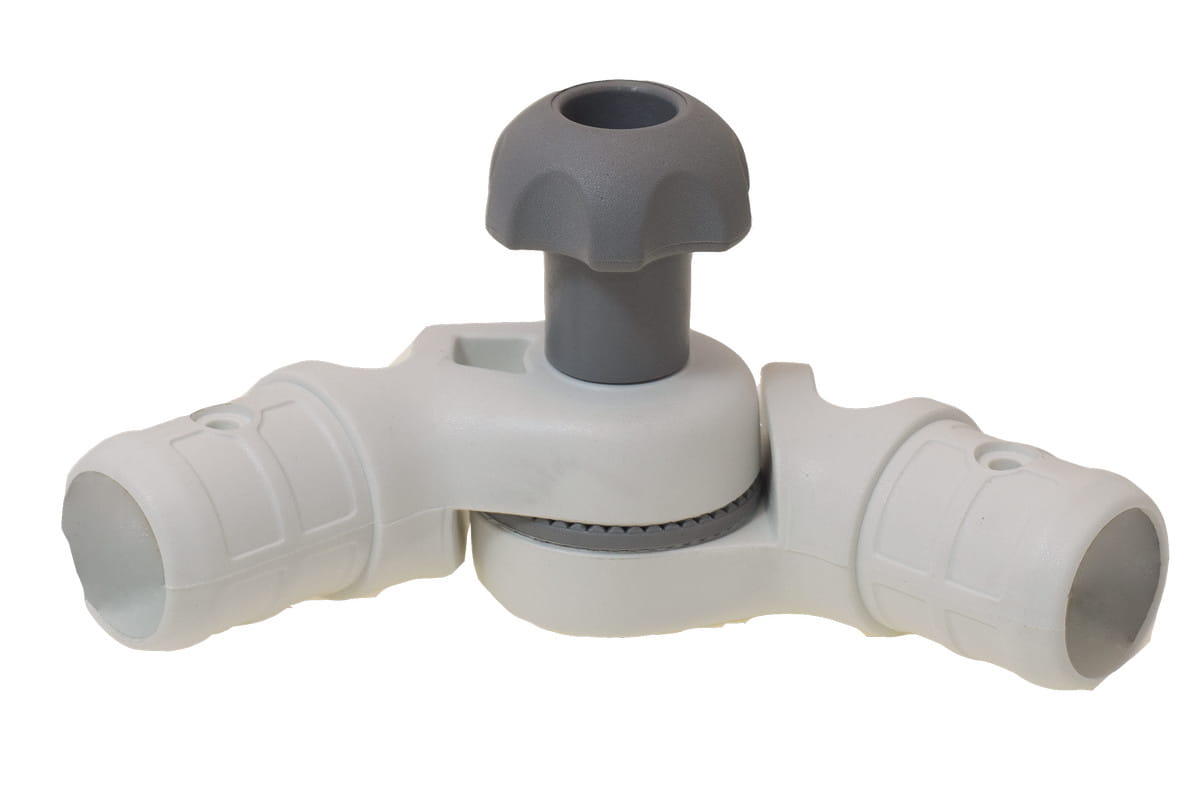 Łącznik regulowany służy do połączenia dwóch relingów. Umożliwia płynne ustawienie kąta obrotu od 0° do 180°. Wykonane z wytrzymałego tworzywa sztucznego - poliamidu.